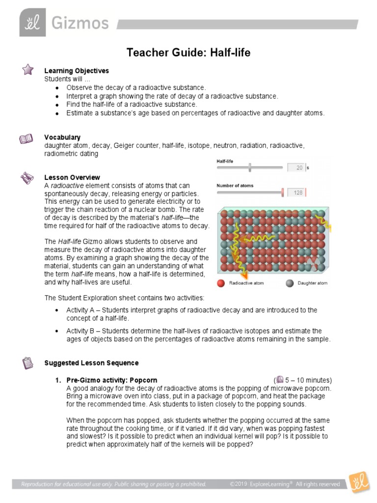 Student Exploration Half Life Pdf Free Download from docplayer.net Look at the color key on the bottom right of the gizmo. Data can be interpreted visually using a dynamic graph, a bar chart, and a table. Holt 6 free pdf ebook download: Investigate the decay of a radioactive substance. People that were infected move throughout everyone that was in the area 2. Describe what happened on the simulation pane: Get all of hollywood.com's best movies lists, news, and more. Data can be interpreted visually using a dynamic graph, a bar chart, and a table.