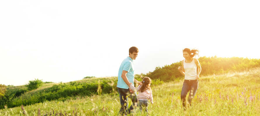 Vid sidsjöns strand kan du bada vid mysiga aborrviken.